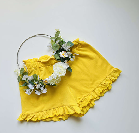 PromotionShort fille uni à volant jaune